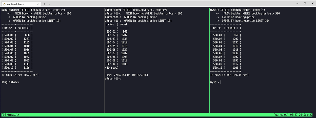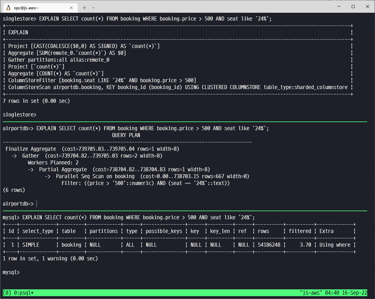 하지만 MySQL Heatwave Cluster node 하나의 컴퓨팅 파워(32vCPU, 512GB Memory) 를 고려해 보면 그보다 훨씬 작은 크기인 8vCPU, 16GB Memory 단일 장비에서 SingleStore 가 비슷한 성능을 기록하는 것을 볼 때, On-premises 에서 Commodity Server 설치 가능, 유연한 Scale In/Out 으로 인한 선형적인 성능 증가, AWS, Azure, GCP 등의 주요 CSP 에서 Managed Cloud 지원 등 비용, 성능, 관리 측면에서 SingleStore 의 장점이 많다고 생각됩니다.