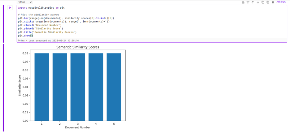 막대 차트를 만들어 각 문서의 유사성 점수를 시각화할 수 있습니다.