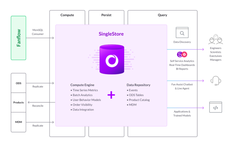 예를 들어, Fanactics는 SingleStore를 전체 전사적 트랜잭션 기능의 핵심 엔진으로 사용하도록 확장하여 목적을 극적화 시켰습니다. 마찬가지로, 금융 서비스 회사는 두 단계에 걸쳐 오라클로 SingleStore로 전환 했습니다. 이제 Kafka 스트리밍과 SingleStore 데이터베이스를 결합하여 운영 분석을 실행합니다.