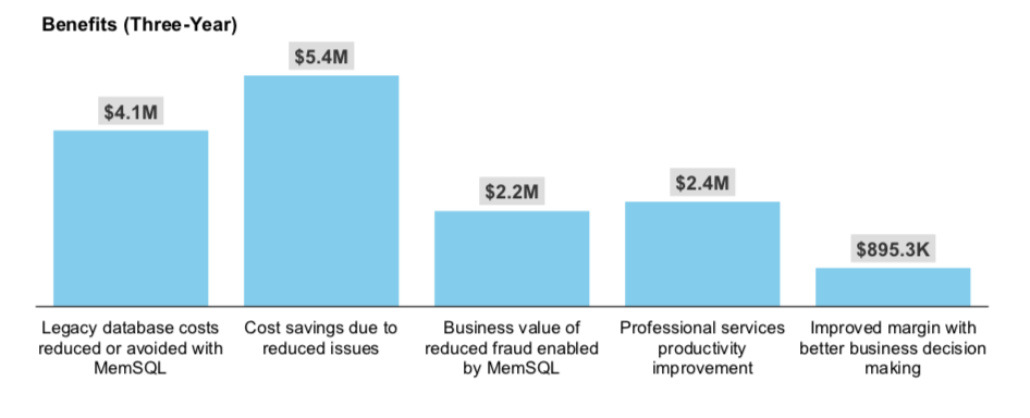 이러한 기능을 활용하여 연구된 특정 회사와 Forrester가 분석을 위해 만든 복합회사는 SingleStore가 약속한 이점을 경험했습니다.