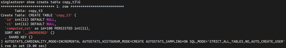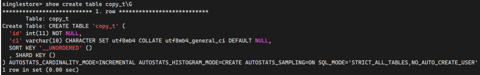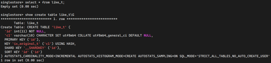 ERROR 1706 (HY000): Feature 'CREATE Explicit ROWSTORE TABLE LIKE' is not supported by SingleStore.