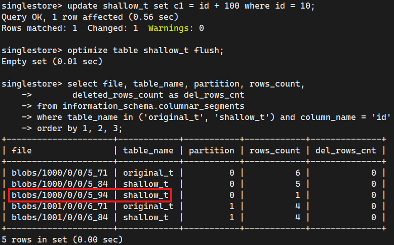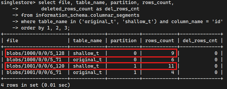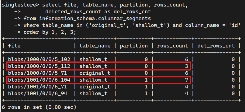 복제 직후 Shallow Copy 테이블과 원본 테이블의 BLOB 파일 (Column Segment) 은 공유됩니다.