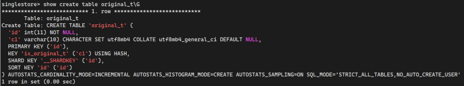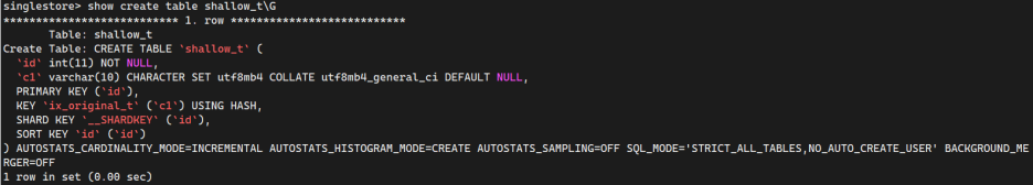 (sort key(id), shard key(c1), key `my_index` (c1))