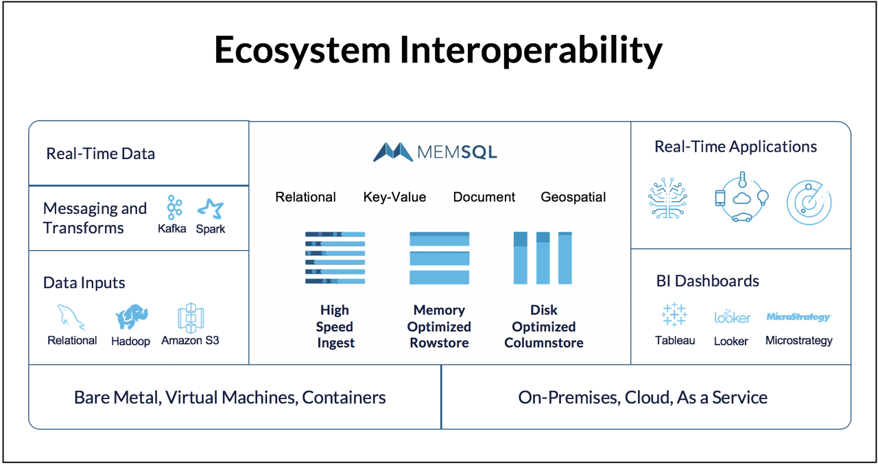 SingleStore는 ANSI 표준 SQL을 지원하는 빠르고 확장 가능한 완전 관계형 데이터베이스입니다. SingleStore는 두 가지 장점을 모두 제공합니다. Hadoop과 같은 산업 표준 서버에서 완벽하게 확장 가능하며 트랜잭션 지원 및 표준 SQL 인터페이스가있는 일관된 데이터베이스를 제공하는 관계형입니다.