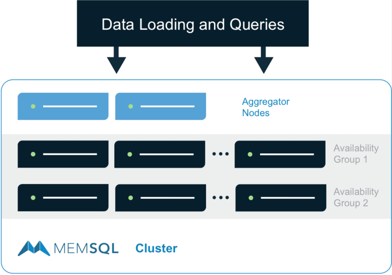SingleStore는 Aggregator 노드와 Leaf 노드로 구성된 2계층(tier) 아키텍처를 사용합니다. Aggregator 노드는 분산 시스템에 대한 게이트웨이 역할을 하는 클러스터 인식 쿼리 라우터입니다. 그들은 메타데이터와 참조 데이터만 저장합니다. Aggregator는 클라이언트에 전송되는 결과를 집계하고, Leaf 노드에 걸쳐 쿼리를 지능적으로 배포합니다. Aggregator의 수를 늘리면 데이터 로딩과 같은 작업이 개선되고, SingleStore가 더 많은 클라이언트 요청을 동시에 처리할 수 있게 됩니다.
