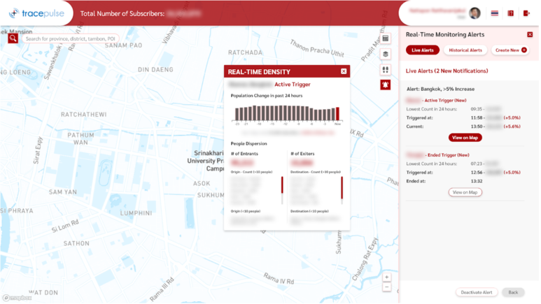 가장 효과적으로 추가 확산을 방지하기 위하여, 익명의 휴대전화가 어떻게 움직이고 있는지를 보여주는 데이터는 지연 시간이 짧은 실시간 데이터여야 하며, 인구 밀도가 증가하는 위치를 즉각적이고 능동적으로 판단해야 합니다. 대유행 상황에는 특히 대규모 집회가 우려됩니다. 주요 개념은 대량 인구가 국가의 한 지역에서 다른 지역으로 어떻게 이동하는지를 추적한 다음, 집회에 참여한 이들이 자신을 스스로 보호하고, 바이러스에 대한 검사의 필요성을 없애기 위하여 태국 정부 당국에 무엇을 전달할지 결정하는 것입니다.