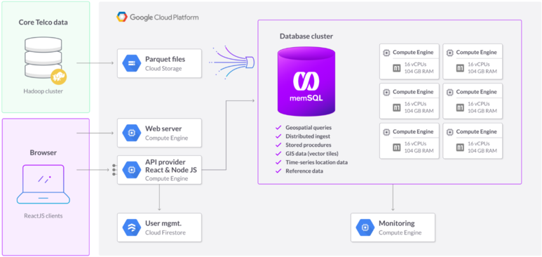 해결책은 구글 클라우드 스토리지(GCS)를 통해 통신사의 코어 네트워크에서 원시 이벤트 데이터를 SingleStore로 스트리밍하는 것이었습니다. 이제, 이 해결책으로 특정 지역에 얼마나 많은 사람이 몰려드는지 알 수 있습니다.