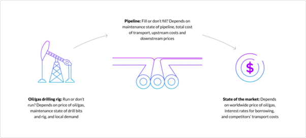 그러나 석유와 가스는 항상 어려운 사업이었습니다. 가장 큰 과제와 기회 중 하나는 재정 운영입니다. 제대로 운영되는 기업은 가용 자본의 보유량 관리를 위해, 산더미 같은 데이터를 사용합니다. 자본에 대한 접근성이 좋아 상황이 좋아 보일 때는 기존 공급량을 유지하면서 새로운 매장량을 찾는데 투자합니다. 어려운 시기에는 생산량을 줄이고, 다음 기회가 올 때까지 기다립니다.